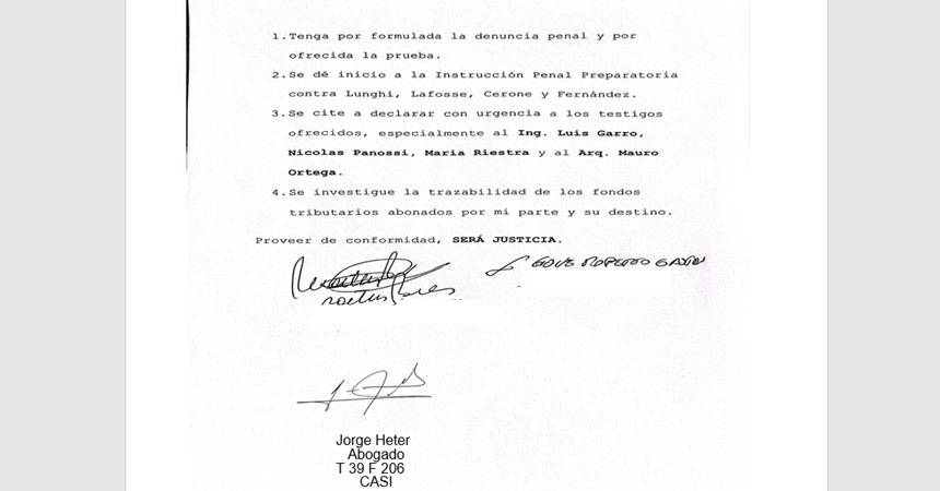 Jorge Heter han presentado una formal denuncia penal ante el Ministerio Público