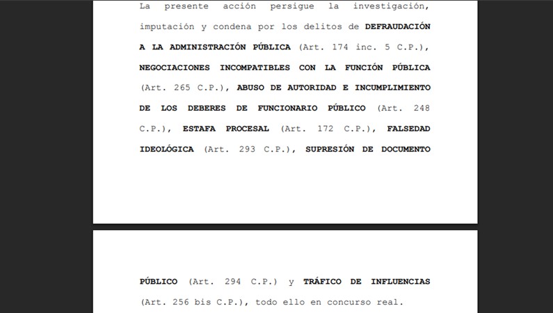La acción legal persigue la investigación de una trama que los denunciantes describen como un "plan criminal organizado y sistemático" ejecutado desde la máxima jerarquía municipal para apropiarse de bienes privados y defraudar al Estado.