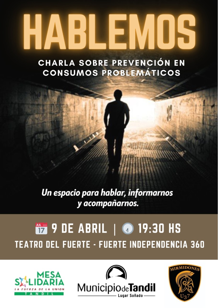 El próximo jueves 9 de abril, a las 19:30, se llevará a cabo en el Teatro del Fuerte la charla abierta denominada "Hablemos: prevención en consumos problemáticos".