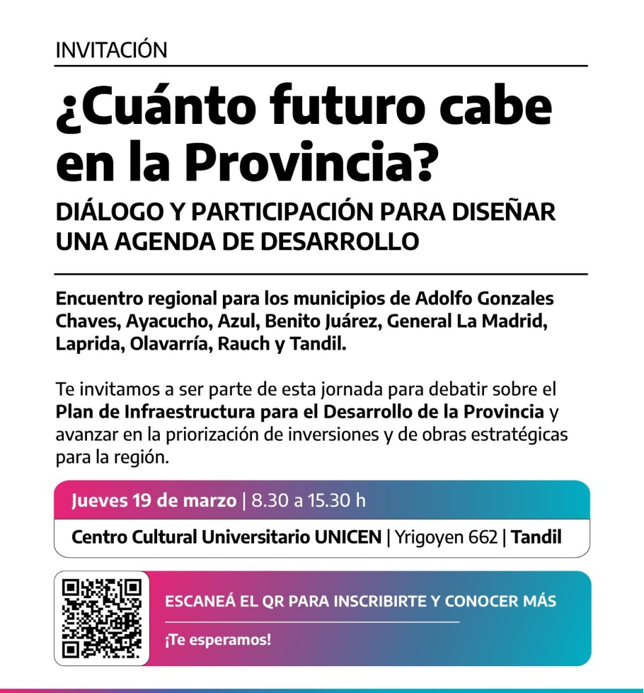 El Ministerio de Infraestructura y Servicios Públicos de la Provincia de Buenos Aires pone en marcha la construcción del Plan de Infraestructura para el Desarrollo, orientado a integrar el diálogo y la participación ciudadana en el diseño de las obras públicas. El primero de 8 encuentros, se desarrollará en Tandil.