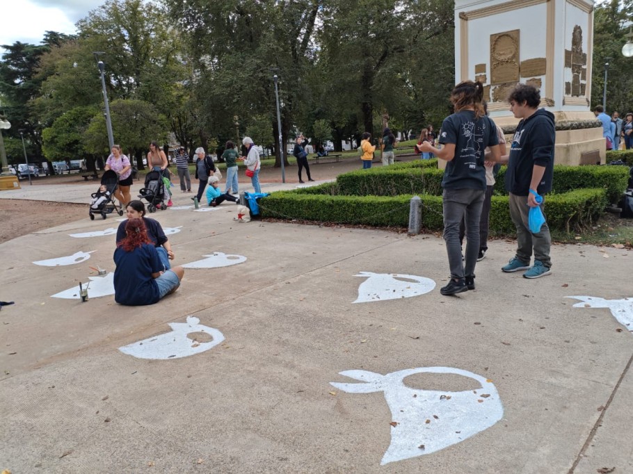 La actividad central consistió en la repintada de los icónicos pañuelos y los nombres de las víctimas, una acción que busca hacer presente la historia y la identidad de quienes fueron perseguidos por el Estado.