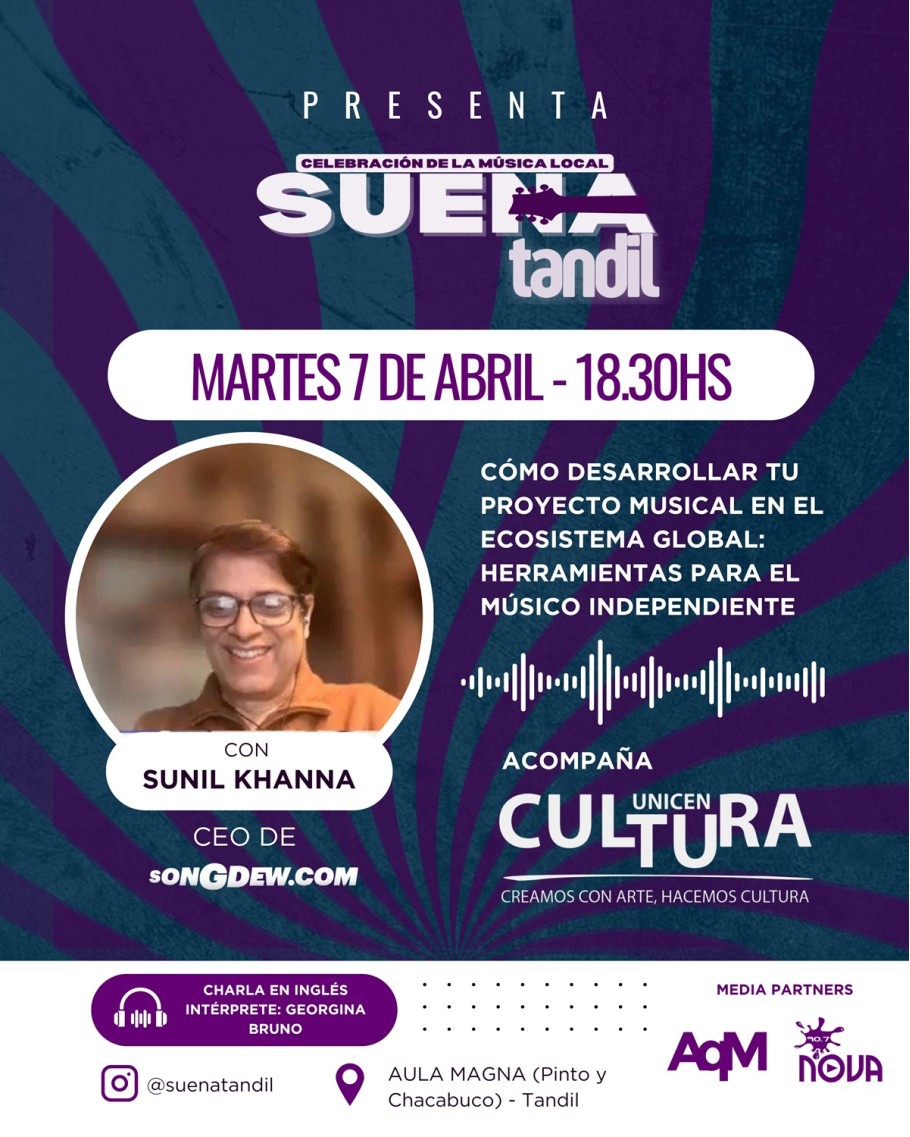 En el marco de Suena Tandil (evento realizado en 2025 para poner en valor la música local), se realizará una charla abierta orientada a músicos y proyectos emergentes sobre el desarrollo de carreras musicales en el contexto actual. En articulación con el Área de Cultura de UNICEN, la charla se realizará el martes 7 de abril a las 18:30 hs. en el Aula Magna (Pinto y Chacabuco) con entrada abierta al público, libre y gratuita.